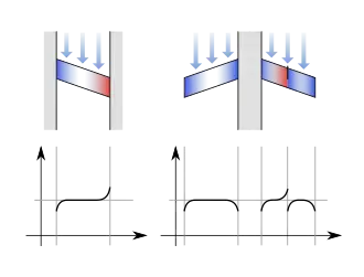 Em asas em seta positiva (isto é, dobradas para trás, em oposição às asas com enflechamento negativo), a sustentação diminui a jusante das barreiras e aumenta a montante delas. O comportamento de uma barreira total, como a parede do túnel de vento mostrada no desenho da esquerda, e de uma pequena barreira, como a partição mostrada no perfil alar da asa direita no desenho da direita, é qualitativamente idêntico. Este deslocamento de sustentação no lado interno da partição (com a descontinuidade que é, portanto, gerada na área central da asa, que é aquela que estolaria primeiro quando altos ângulos de ataque são atingidos), tem efeitos marcadamente positivos nas características de estol da asa, uma vez que o fluxo potencial influenciado pela parede, por sua vez, afeta a camada limite e retarda sua separação da parte traseira da asa em ângulos de ataque elevados, atrasando correspondentemente a perda de sustentação que resultaria em estol.[1]