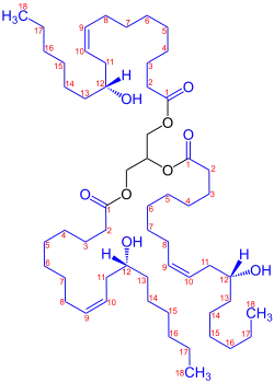 O óleo de rícino ou óleo de mamona (ou azeite de rícino ou mamona) é obtido a partir das sementes da planta Ricinus communis, que contém aproximadamente 40-50 por cento de óleo. O óleo por sua vez contém 70-77 por cento dos triglicerídeos do ácido ricinoleico. Diferentemente das próprias sementes desta planta, não é tóxico, pois a ricina não é solúvel no óleo.