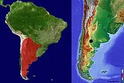 - ↑ Leanza, H.A.; Apesteguía, S.; Novas, F.E.; Fuente, M.S. (2004). «Cretaceous terrestrial beds from the Neuquén Basin (Argentina) and their tetrapod assemblages». Cretaceous Research. 25 (1): 61–87. doi:10.1016/j.cretres.2003.10.005