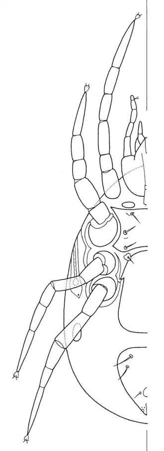 - ↑ Gerald W. Krantz & D. E. Walter, ed. (2009). A Manual of Acarology 3rd ed. [S.l.]: Texas Tech University Press. ISBN 978-0896726208