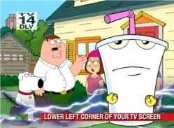 - Em 1 de abril de 2007, Adult Swim promoveu uma estreia na televisão de Aqua Teen Hunger Force Colon Movie Film for Theatres antes de seu lançamento nos cinemas que ocorreu 9 a 12 dias depois, mas exibiu apenas os primeiros dois minutos (que estavam disponíveis há muito tempo no site oficial do filme) antes de minimizá-lo em uma exibição comicamente pequena picture-in-picture em uma programação vinculada regularmente.[176]