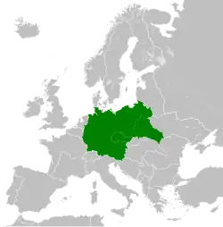 Em 1939, as crescentes tensões de nacionalismo, militarismo e questões territoriais levaram os alemães ao lançamento da Blitzkrieg ("guerra relâmpago") em 1 de setembro contra a Polônia, seguido dois dias depois pelas declarações de guerra da Grã-Bretanha e da França, marcando o início da Segunda Guerra Mundial. A Alemanha rapidamente ganhou controle direto ou indireto da maioria da Europa.[38]