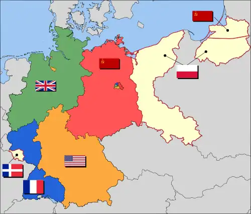 O Dia-D foi o marco de uma virada importante sobre a Frente Ocidental, quando as forças aliadas desembarcaram nas praias da Normandia e avançaram rapidamente sobre o território alemão. A derrota da Alemanha ocorreu em seguida. Em 8 de maio de 1945, as forças armadas alemãs se entregaram após o Exército Vermelho ocupar Berlim.[38]