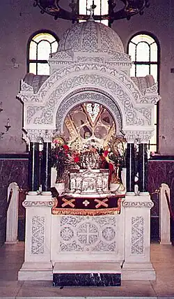 Relicário com o pedaço dos restos mortais de Santo André, em Santo André (Barreiro), em Portugal[11]