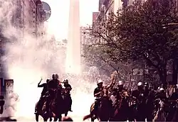 Em 1989, Carlos Menem é eleito presidente e toma posse, com uma inflação de 5 000%. Seu governo foi marcado por medidas de combate à inflação e uma orientação econômica neoliberal. Em 1991, o Ministro da Economia, Domingo Cavallo, torna o peso argentino paritário ao dólar estadunidense, congelando a inflação, e a Argentina funda o Mercosul junto com o Brasil, Uruguai e Paraguai. No ano seguinte, a estatal petrolífera e o sistema energético são privatizados. Em 1994, Menem é reeleito. As medidas econômicas adotadas mostraram-se insustentáveis, pois ao longo dessa gestão houve uma escalada do desemprego e uma prolongada recessão.[62]