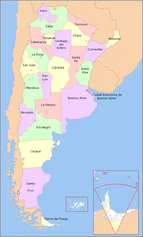 Argentina, oficialmente República Argentina (pronunciado em espanhol: [reˈpuβlika aɾxenˈtina]), é o segundo maior país da América do Sul em território e o terceiro em termos de população, constituída como uma federação de 23 províncias e uma cidade autônoma, Buenos Aires, capital do país. É o oitavo maior país do mundo em área territorial e o maior entre as nações de língua espanhola, embora México, Colômbia e Espanha, que possuem menor território, sejam mais populosos.