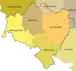 A área da voivodia cobre a maior parte da Baixa Silésia, terras de Kłodzko, leste da Alta Lusácia e uma parte da Saxônia.