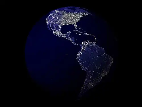![]() Localização da América no globo terrestre. | |