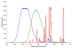 - ↑ Bruce MacEvoy. “Do ‘Primary’ Colors Exist?” (Material Trichromacy section). Handprint. Acessado em 10 de agosto de 2007.