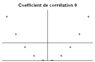 Neste exemplo, o coeficiente de Pearson tem o numerador igual a zero. Portanto, a razão é zero, o que significa inexistência linear. Em cálculo,