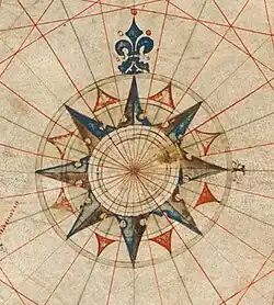A mais antiga Rosa dos ventos com Flor-de-lis da carta de marear de Pedro Reinel de 1504