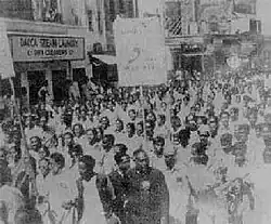 Para demolir o protesto, o governo do Paquistão proibiu reuniões públicas e comícios. Os estudantes da Universidade de Dhaka, com o apoio do público em geral, organizaram grandes comícios e reuniões. Em 21 de fevereiro de 1952, a polícia abriu fogo contra comícios. Salam, Barkat, Rafiq, Jabbar e Shafiur morreram, com centenas de outros feridos. Este é um incidente raro na história, onde as pessoas sacrificaram suas vidas por sua língua materna.