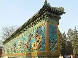 - O segundo é chamado de chiwen (螭吻 ou 鴟吻 pinyin chǐwěn ou 嘲风 pinyin cháofēng), que parece uma besta e gosta de ver longe. Encontra-se sempre no telhado.