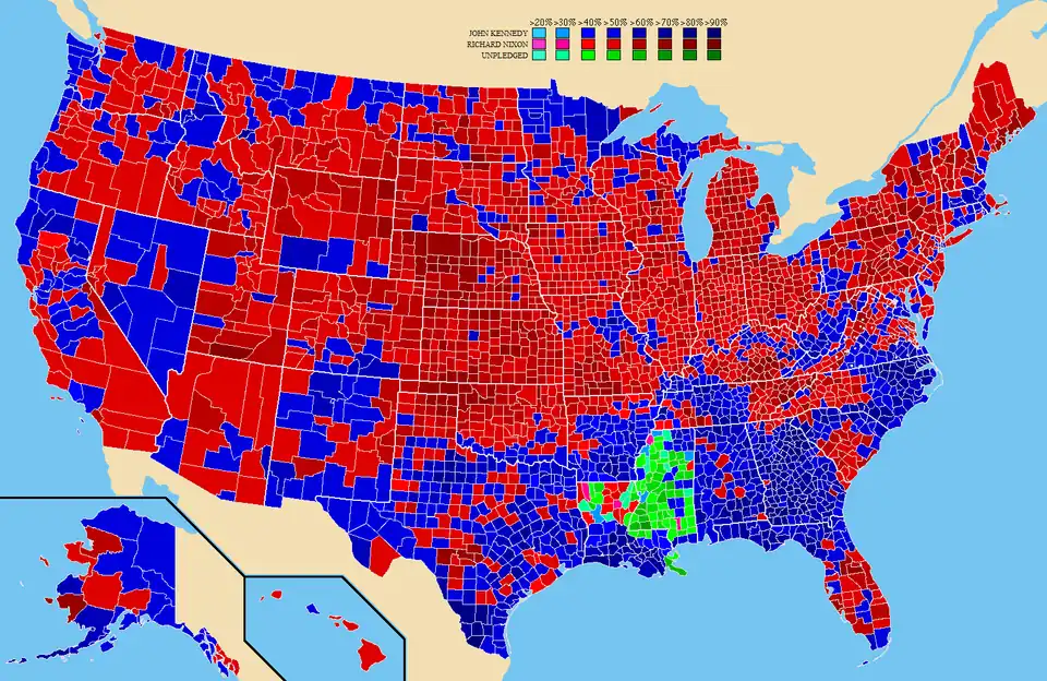 A votação foi a mais renhida desde 1916, e a margem de vitória de Kennedy no voto popular é uma das menores da história. A eleição ainda hoje é fonte de debate entre alguns historiadores contemporâneos em relação a um suposto roubo de votos que teria ajudado Kennedy em alguns estados.