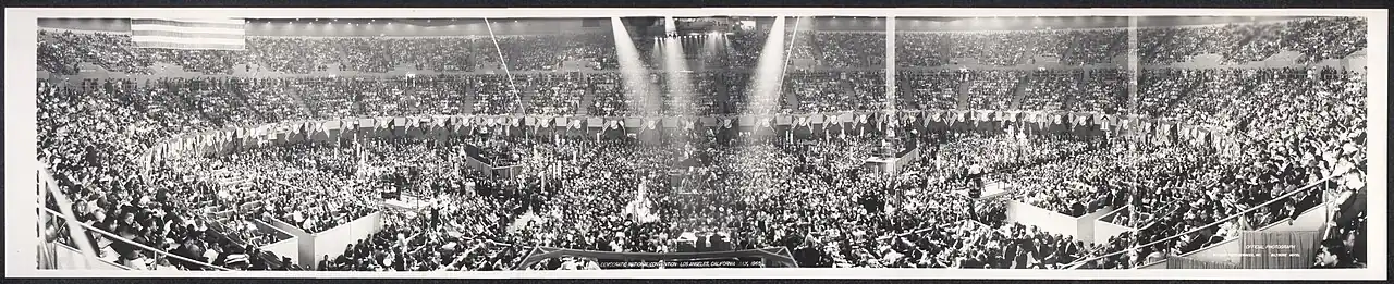 A Convenção Nacional do Partido Democrata foi relaizada entre 11 e 15 de julho em Los Angeles. No primeiro escrutínio, John F. Kennedy foi indicado a presidente com 806 votos (52.89%), contra 409 (26,84%) de Lyndon Johnson, a 86 (5,64%) de Stuart Symington, a 79.5 (5,25%) de Adlai Stevenson, a 43 (2,82%) de Robert B. Meyner, a 41 (2,76%) de Hubert Humphrey, a 30 (1,97%) de George A. Smathers, a 23 (1,51%) de Ross Barnett, e a 5 (0,19%) de outros. Lyndon B. Johnson foi escolhido como vice.