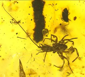 Fósseis conservados em resina são um bom exemplo de mumificação (ou conservação) que permitem verificar como eram os organismos vivos no passado.[13] Animais menores, como insetos, aranhas e pequenos lagartos, quando presos em resina segregada por certas árvores, ficam praticamente intactos por milhões de anos. A produção de resinas remonta ao Paleozóico, no período Carbonífero, mas a partir do Triássico encontra-se maior abundância de âmbar no registro geológico.[13] Com isso, para uma verificação da história das formas de vida anteriores a essa preservação em âmbar, os paleontólogos recorrem aos registros fósseis também presentes nas rochas.