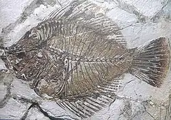 Amphistium é um peixe fóssil de 50 milhões de anos identificado como um parente inicial de Pleuronectiformes e como um fóssil de transição.[27] Em Amphistium, a transição da cabeça simétrica típica de um vertebrado é incompleta, com um olho colocado próximo ao centro superior da cabeça.[28] Os paleontólogos concluíram que "a mudança aconteceu gradualmente, de uma forma consistente com a evolução via seleção natural — não repentinamente, como os pesquisadores antes tinham pouca escolha a não ser acreditar."[27]