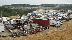 - ↑ Legere, Laura (16 de abril de 2010). «Gas company slapped with drilling ban and fine». The Times Tribune (em inglês)