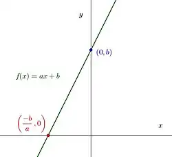 Qualquer função afim intersecta o eixo das ordenadas (eixo ), também denominado ordenada na origem. Para definir esse ponto de interseção basta calcular