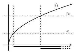 O gráfico de uma função que é, ao mesmo tempo, côncava e quasiconvexa com os números reais não-negativos.