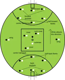 | Pontuação | • Goal: 6 pontos • Behind: 1 ponto |