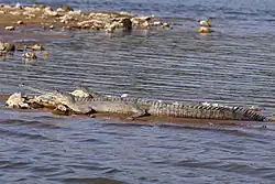- ↑ Rao, R.J.; Choudhury, B.C. (1990). «Sympatric distribution of Gharial Gavialis gangeticus and Mugger Crocodylus palustris in India». Journal of the Bombay Natural History Society. 89: 313-314