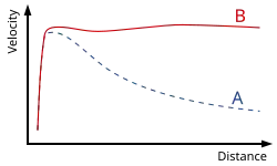 - Estrelas extra-rápidas: As estrelas nas galáxias seguem uma distribuição de velocidades onde as estrelas na periferia se movem mais rápido do que deveriam de acordo com as distribuições observadas da matéria normal. Galáxias dentro de aglomerados de galáxias mostram um padrão semelhante. A matéria escura, que interagiria através da gravitação, mas não eletromagneticamente, seria responsável pela discrepância. Várias modificações na dinâmica newtoniana também foram propostas.