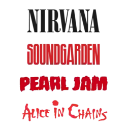 ![]() As quatro maiores bandas de grunge agrupadas. Sendo elas: Nirvana, Soundgarden, Pearl Jam e Alice in Chains. | |