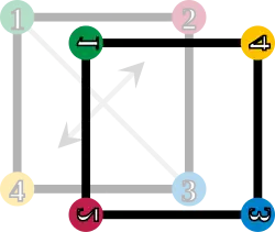 As possíveis configurações (ou movimentos) obtidas a partir de rotações ou reflexões de um quadrado é denominado D4.