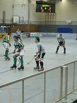 O hóquei em patins é um desporto coletivo que se joga num rinque em que os atletas rolam sobre patins e usam um stick para conduzir uma bola e introduzi-la na baliza adversária para marcar um golo.
