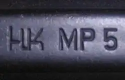 O logotipo do fabricante, a designação do tipo, o número de série e a marca de prova podem ser encontrados na parte superior da culatra (da frente para trás). As informações no invólucro são gravadas de acordo com a norma DIN 1451 em letras grandes de 3mm. O número de série contém parcialmente um prefixo usado para estruturação. Em algumas MP5 no calibre 9mm é 62, na MP5SD é 63.
