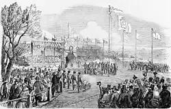 Cerimónia de inauguração das obras do Caminho de Ferro do Leste, em 7 de Maio de 1853
