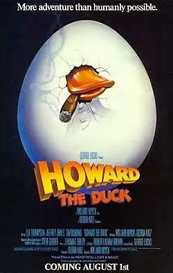 George Lucas propôs adaptar Howard, o Pato para os cinemas após ele dirigir American Graffiti. Depois de múltiplas dificuldades de produção e respostas mistas nas audiências de testes, Howard the Duck foi lançado nos cinemas dos Estados Unidos em 1 de agosto de 1986. Após seu lançamento, o filme tornou-se um fracasso crítico e comercial e, nos anos seguintes, foi considerado um dos piores filmes já feitos em todos os tempos. Foi indicado a sete Framboesas de Ouro (vencendo quatro) e arrecadou cerca de US$ 15 milhões no seu país de origem em comparação com o orçamento de US$ 36 milhões.[4] Apesar das críticas, o filme ganhou um status de cult entre os fãs da série original dos quadrinhos.