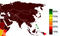 No continente asiático, o número de católicos é crescente. Cerca de 76% dos católicos no sudeste da Ásia estão concentrados nas Filipinas (com um contingente de católicos de 85 milhões em 2016), na Índia (22 milhões) e na Coreia do Sul (6 milhões).[2][4]