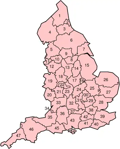 ![]() Localização da Inglaterra (em verde escuro) No Reino Unido (em verde claro) No continente europeu (em cinza escuro) | |