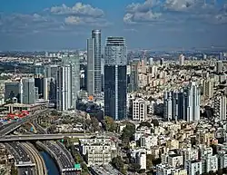 O centro financeiro de Israel é Telavive,[33] enquanto Jerusalém é a cidade mais populosa do país e sua capital[nota 8] (embora não seja reconhecida como tal pela comunidade internacional). A população israelense, conforme definido pelo Escritório Central de Estatísticas de Israel, foi estimada em 2024 em 9,8 milhões de pessoas, das quais 7,1 milhões eram judias. Os árabes formam a segunda maior etnia do país, com 2 milhões de pessoas e outras etnias somam 558 600 pessoas.[34] A grande maioria dos árabes israelenses são muçulmanos, além de uma população menor, mas significativa de beduínos do Negueve e os cristãos árabes. Outras minorias incluem várias denominações étnicas e etno-religiosas, como os drusos, circassianos, samaritanos, israelitas hebreus negros, maronitas, além de outros.