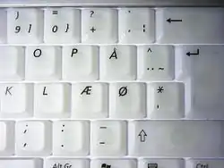 - Å,å: É equivalente ao fonema Ô do português, e foi introduzido pela reforma ortográfica de 1948 para substituir "aa". A forma antiga "aa" ainda persiste em alguns nomes tradicionais ou topônimos, como em Aalborg.