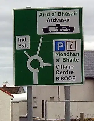 Sinalização rodoviária em gaélico e inglês, em Mallaig.