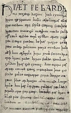 Inicialmente, o inglês antigo era um grupo diverso de dialetos, o que reflete as origens variadas dos reinos anglo-saxões da Grã-Bretanha,[26] mas um desses dialetos, o saxão ocidental, por fim passou a dominar e é neste que o poema Beowulf foi escrito.