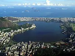A palavra "lagoa" vem do latim lacuna, ae (donde também vieram as palavras laguna e lacuna): "fosso, poça, lagoa, brejo".