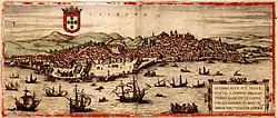 É uma cidade à beira-mar, com ondas que se quebram de encontro às muralhas, admiráveis e de boa construção. A parte ocidental da cidade é encimada por arcos sobrepostos assentes em colunas de mármore apoiadas em envasamentos de mármore. Por natureza, a cidade é belíssima".