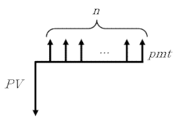Fluxo financeiro de um investimento (PV) com número fixo (n) de pagamentos de mesmo valor (pmt)