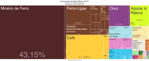 Uma parte da história do atual estado de Minas Gerais foi determinada pela exploração da grande riqueza mineral que se encontra em seu território. Seu nome, inclusive, provém da larga quantidade e variedade das minas presentes, que passaram a ser exploradas desde o século XVII e até os dias atuais movimentam uma fração importante da economia do estado.[13]