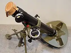 O morteiro é uma boca de fogo de carregar pela parte anterior do tubo (antecarga), destinada a lançar granadas em tiro curvo de curto alcance.
