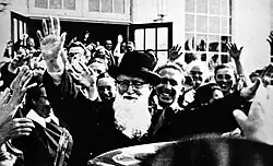 Don João de Pozzobon, fundador do Apostolado da Mãe Peregrina, trazendo uma foto da MTA (Mãe Três Vezes Admirável).