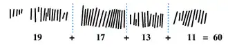 Terceira coluna do osso de Ishango, que contém os números primos entre 10 e 20.
