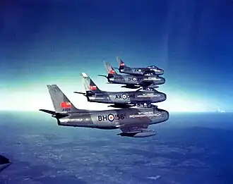 ↑ abNorth-American F86 Sabre In Action, Larry Davis, Squadron/Signal Publications, 1992, ISBN 0897472829
