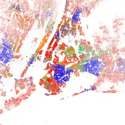 Nova Iorque abriga a sede da Organização das Nações Unidas (ONU),[9] sendo um importante centro para assuntos internacionais e amplamente considerada como a capital cultural do mundo.[10][11][12][13] Localizada em um dos maiores portos naturais do mundo,[14] a cidade é composta por cinco boroughs: Bronx, Brooklyn, Manhattan, Queens e Staten Island.[15] Com uma população superior a 8,8 milhões de habitantes,[4] distribuídos numa área de terra de apenas 778 km²,[3] Nova Iorque é a grande cidade mais densamente povoada dos Estados Unidos e a segunda localidade mais densamente povoada do estado de Nova Iorque. Com cerca de 800 idiomas diferentes falados em seu território, Nova Iorque é a cidade com a maior diversidade linguística do mundo.[16] A população da Região Metropolitana de Nova Iorque é a maior dos Estados Unidos, estimada em cerca de 18,9 milhões de pessoas distribuídas em cerca de 17 400 km².[17][18]