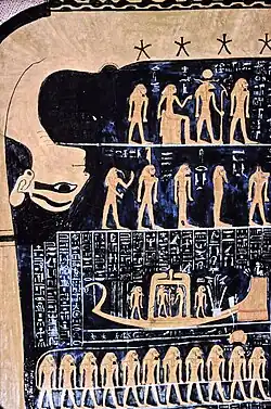 - ↑ Ronald Wells: The Mythology of Nut and the Birth of Ra. In: Studien zur altägyptischen Kultur. Nr. 19, 1992, S. 305–321.