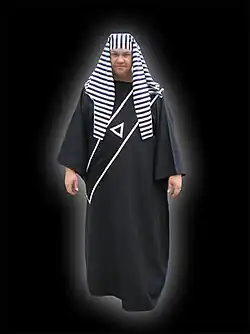 Samuel Liddel "MacGregor" Mathers, em vestes egípcias, durante um ritual auroriano.